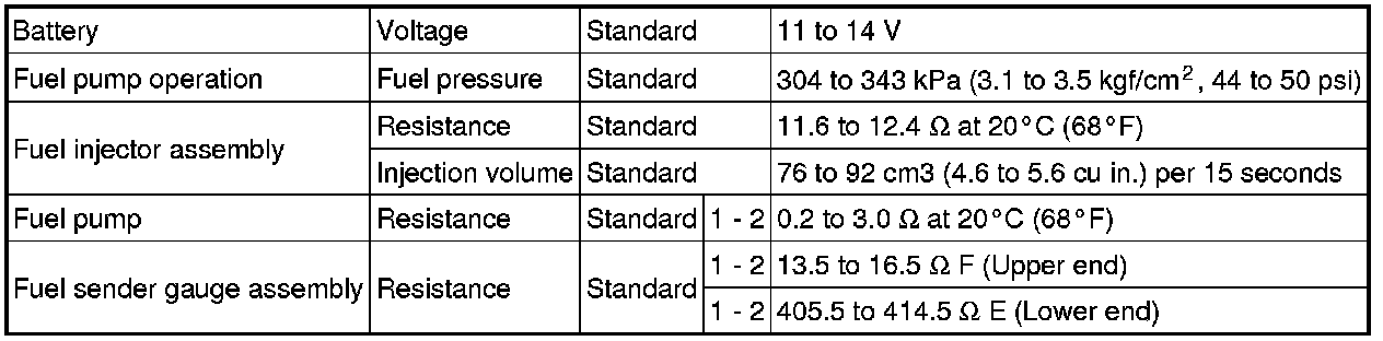 SERVICE SPECIFICATIONS: 2AZ-FE FUEL: SERVICE DATA