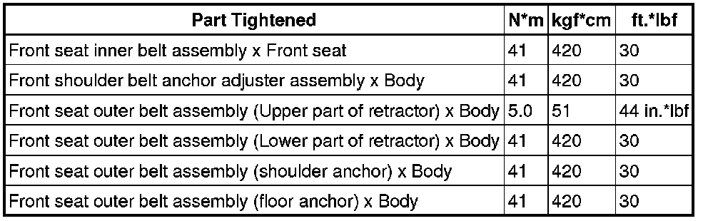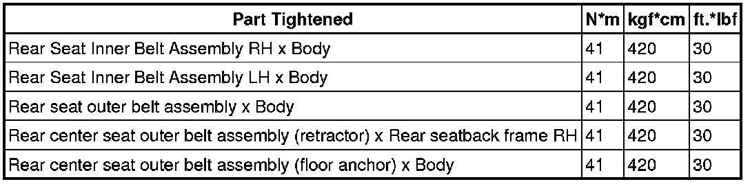 SERVICE SPECIFICATIONS: SEAT BELT: TORQUE SPECIFICATIONS