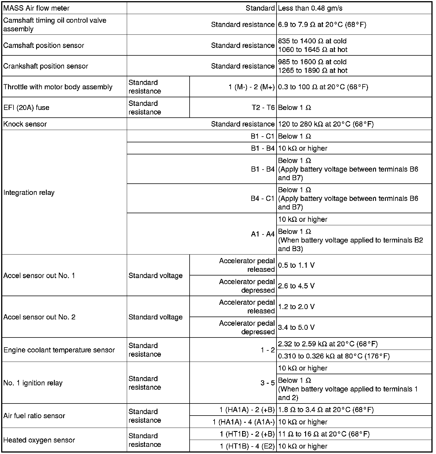 SERVICE SPECIFICATIONS: 2AZ-FE ENGINE CONTROL SYSTEM: SERVICE DATA