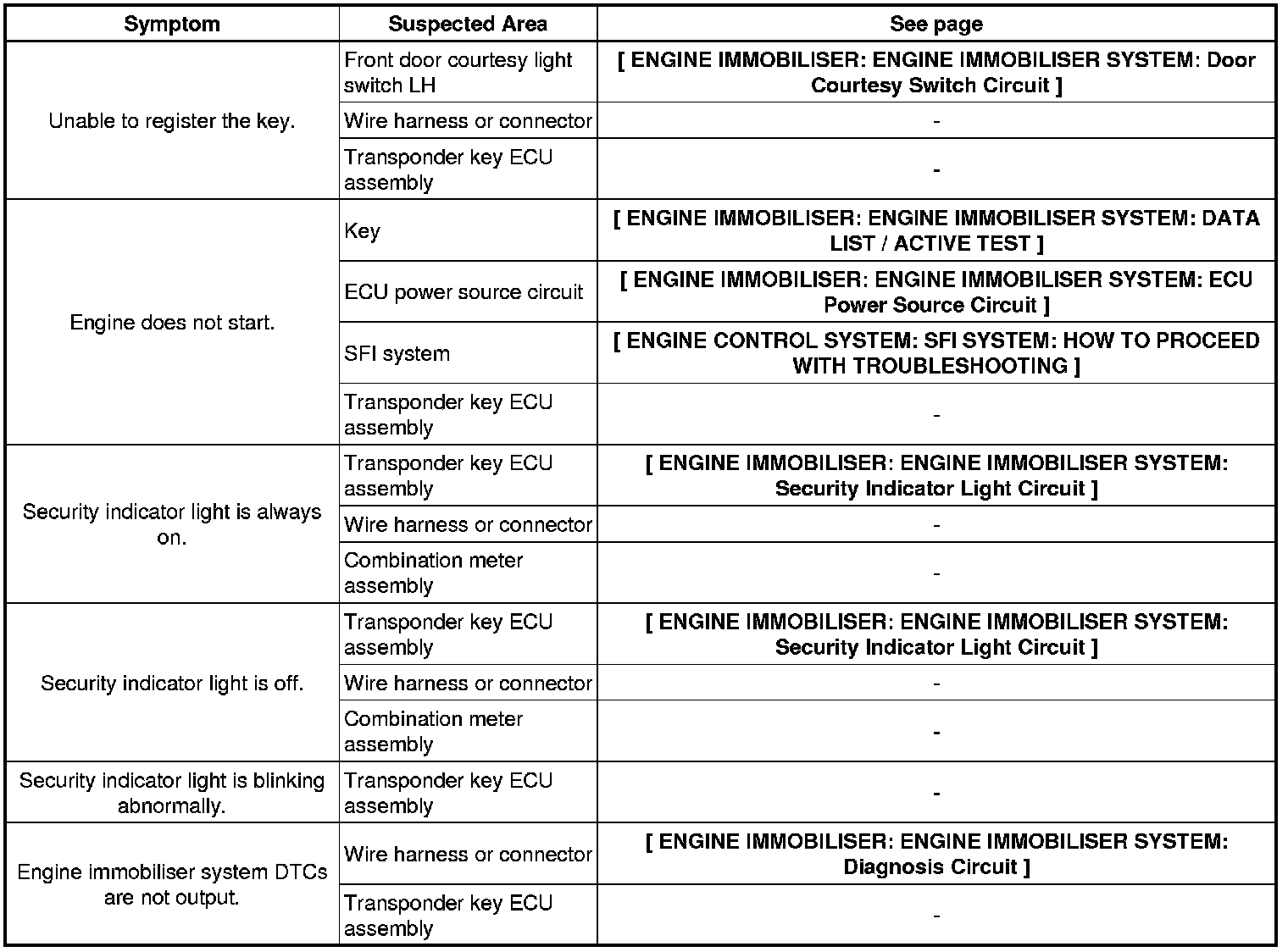 ENGINE IMMOBILISER: ENGINE IMMOBILISER SYSTEM: PROBLEM SYMPTOMS TABLE