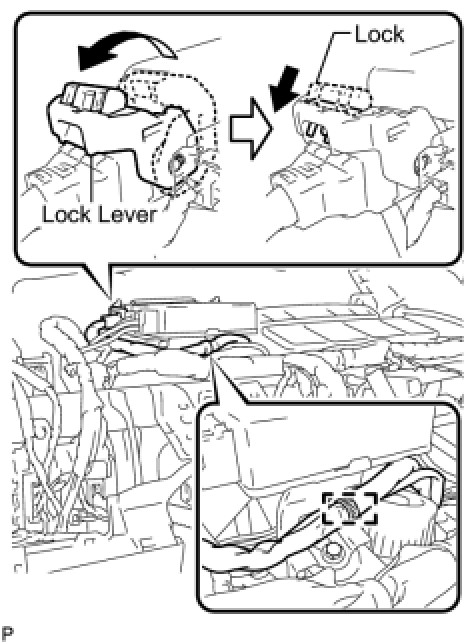As shown in the illustration, return the lock lever to its original position to connect the connector and securely push in the lock of the lock lever.
