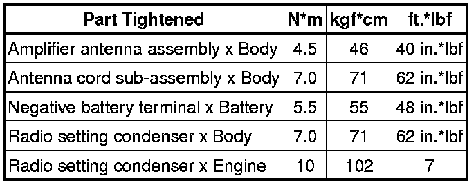 SERVICE SPECIFICATIONS: AUDIO / VISUAL: TORQUE SPECIFICATIONS