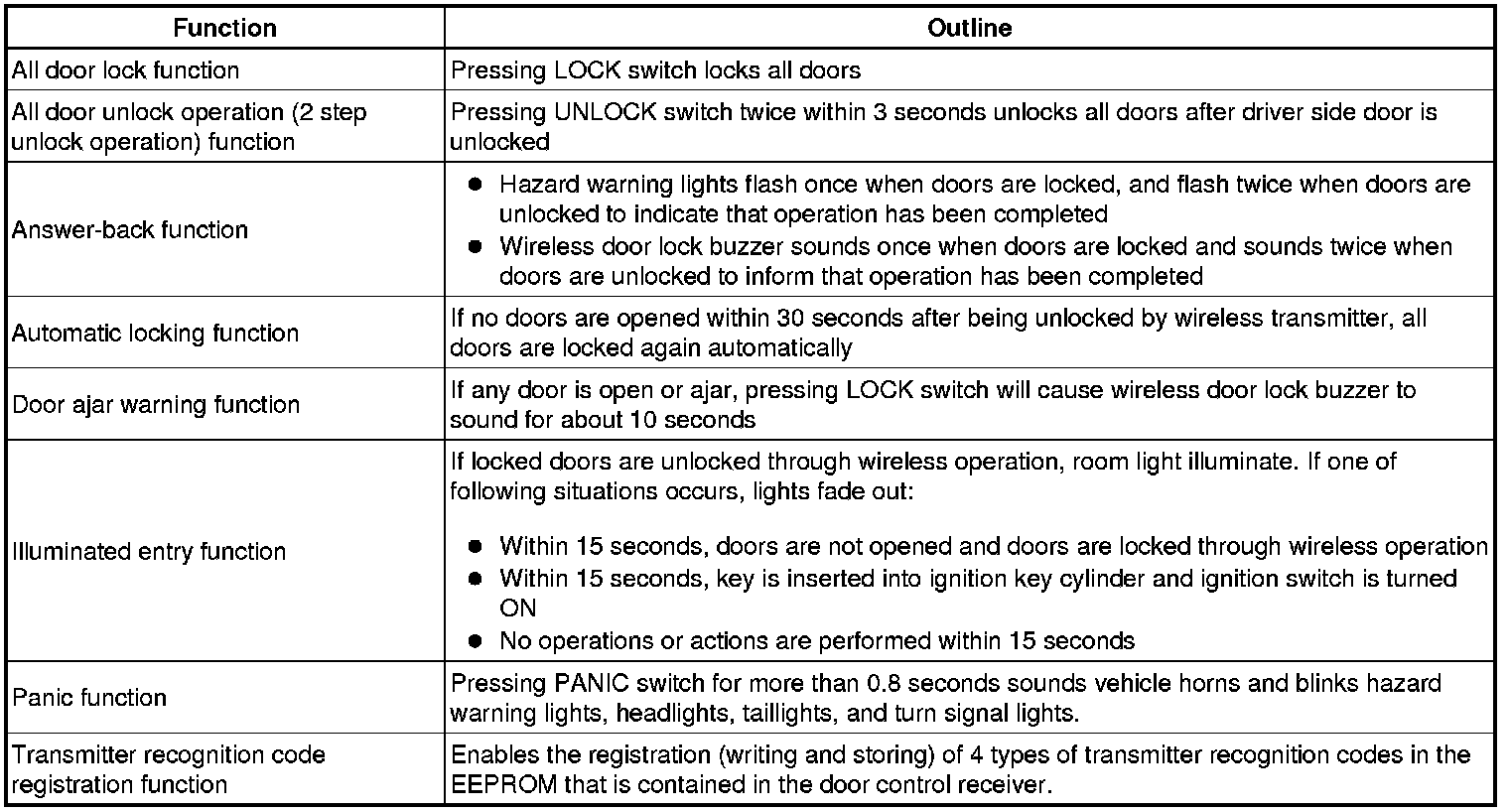 (a) The door control transmitter has LOCK and UNLOCK switches. Operating these switches activates each function. The wireless door lock control system has the following functions: