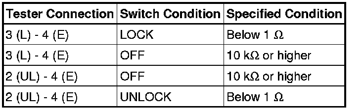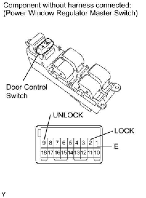 If the result is not as specified, replace the power window regulator master switch assembly.