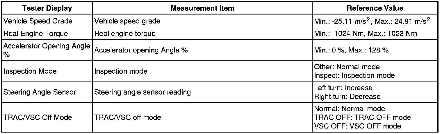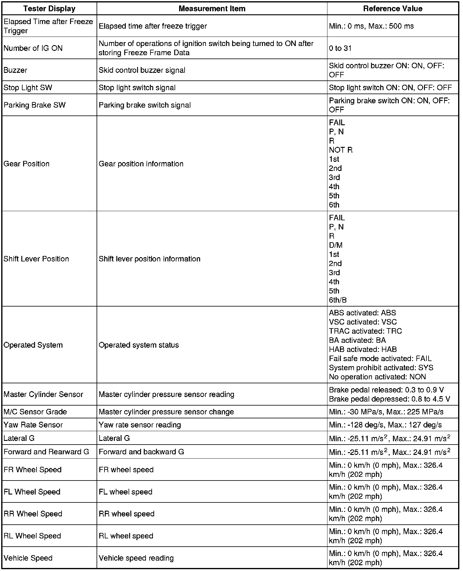 * Freeze Frame Data at the time the ABS operates: