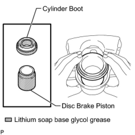 (a) Install the cylinder boot into the disc brake cylinder.