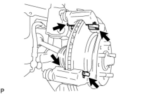 (a) Install the 4 disc brake pad support plates onto the disc brake cylinder mounting.