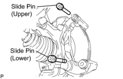 (a) Apply lithium soap base glycol grease to the slide pins and a new slide bush, as shown in the illustration.