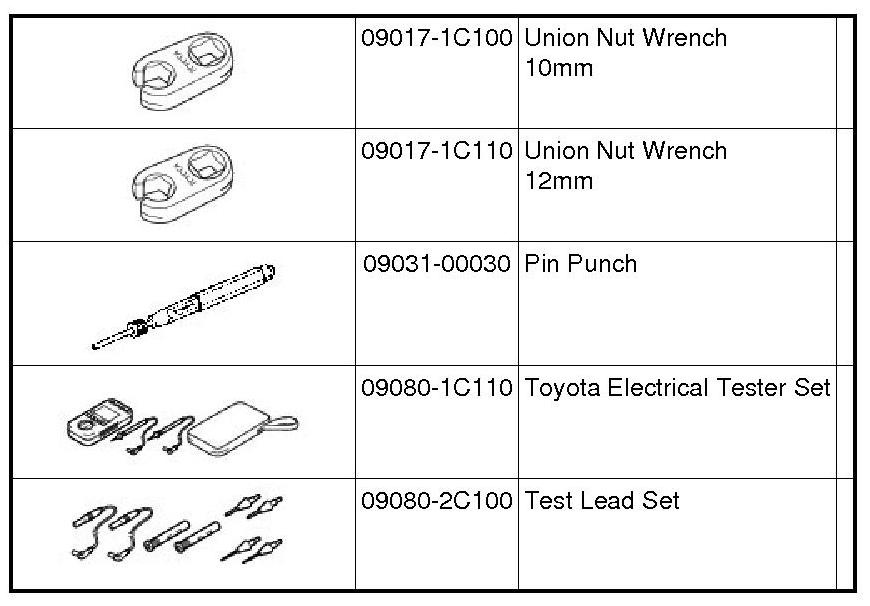 PREPARATION: BRAKE CONTROL: RECOMMENDED TOOLS