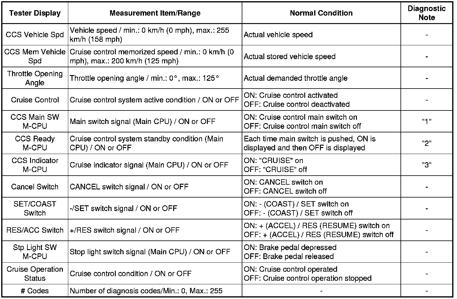CRUISE CONTROL: CRUISE CONTROL SYSTEM: DATA LIST / ACTIVE TEST