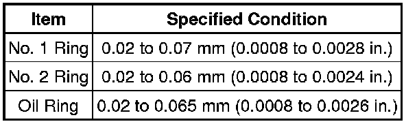 (a) Using a feeler gauge, measure the clearance between a new piston ring and the wall of the ring groove.