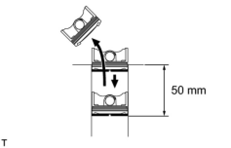 (a) Using a piston, push the piston ring a little beyond the bottom of the ring travel, 50 mm (1.97 in.) from the top of the cylinder block.