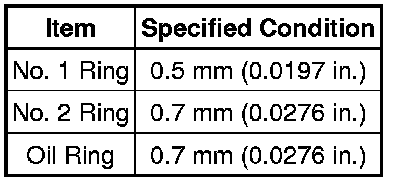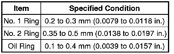 If the end gap is greater than the maximum, replace the piston ring. If the end gap is greater than the maximum, even with a new piston ring, replace the cylinder block.