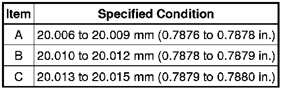 20.012 to 20.021 mm (0.7879 to 0.7882 in.)