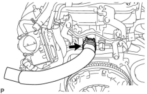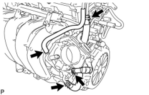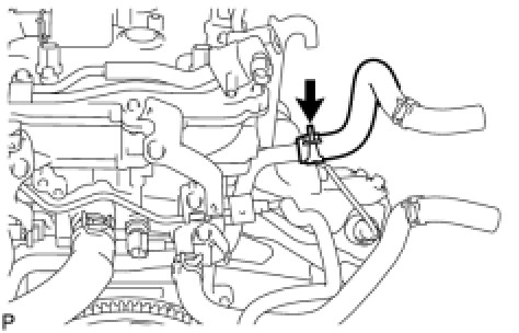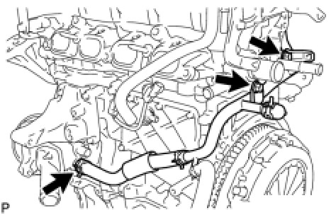(b) Connect the No. 3 water by-pass hose with the clip.