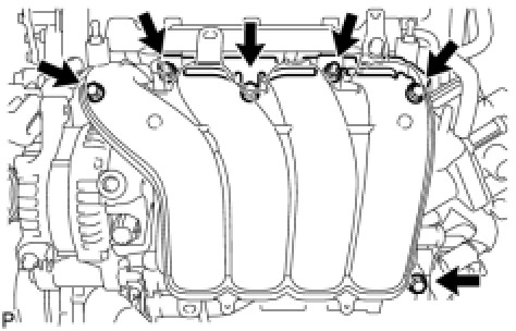 (b) Provisionally tighten the intake manifold and manifold stay with the 4 bolts and 2 nuts in the order shown in the illustration, and then tighten them to the specified torque.