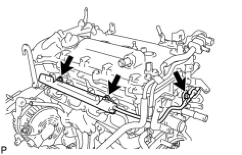 (a) Install the fuel delivery pipe with the 4 fuel injectors, then provisionally install the 3 bolts.