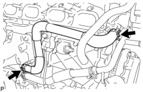 (g) Install the 2 water by-pass hoses with the 2 clips.