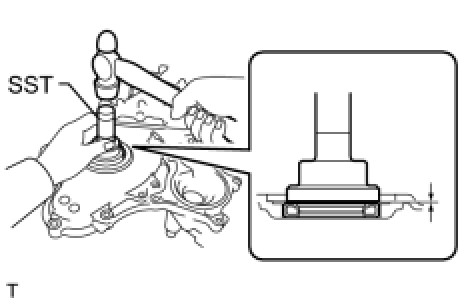 (d) Using SST and a hammer, evenly tap in a new oil seal until its surface is flush with the rear oil seal retainer edge.