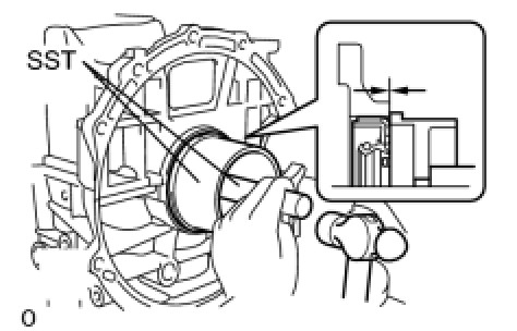 (b) Using SST, tap in a new oil seal until its surface is flush with the timing gear case edge.