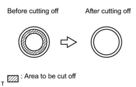 (c) Using a cutter, cut off the sealing part of the removed plug tube gasket.