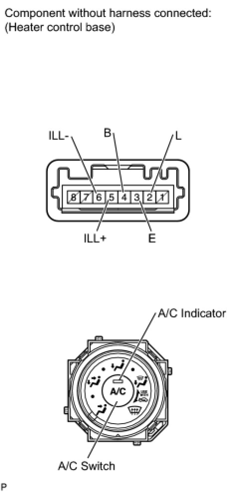 (1) Connect the positive (+) lead from the battery to terminal 5 (ILL+) and the negative (-) lead to terminal 6 (ILL-), then check that the bulb illuminates.