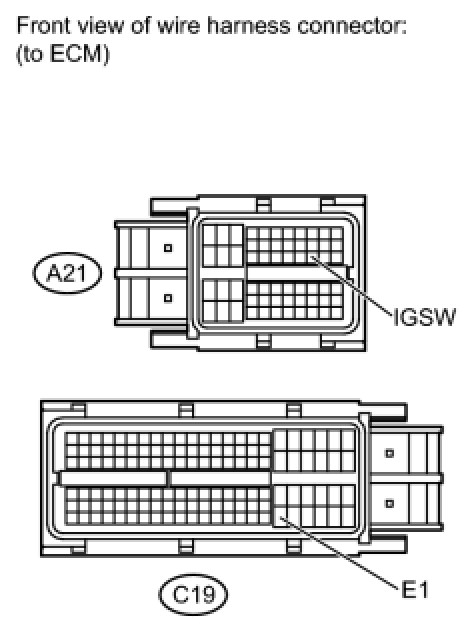 (a) Disconnect the A21 and C19 ECM connectors.