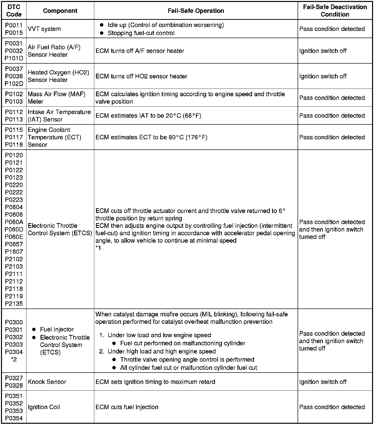 * *2: Misfire related fail-safe operations occur when catalyst overheat malfunctions occur.