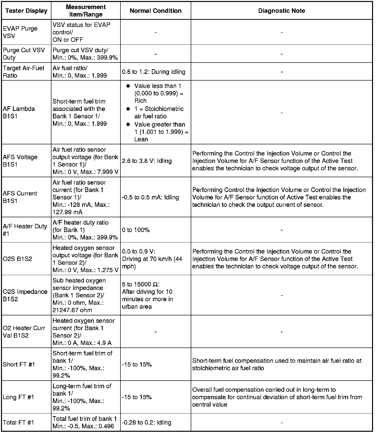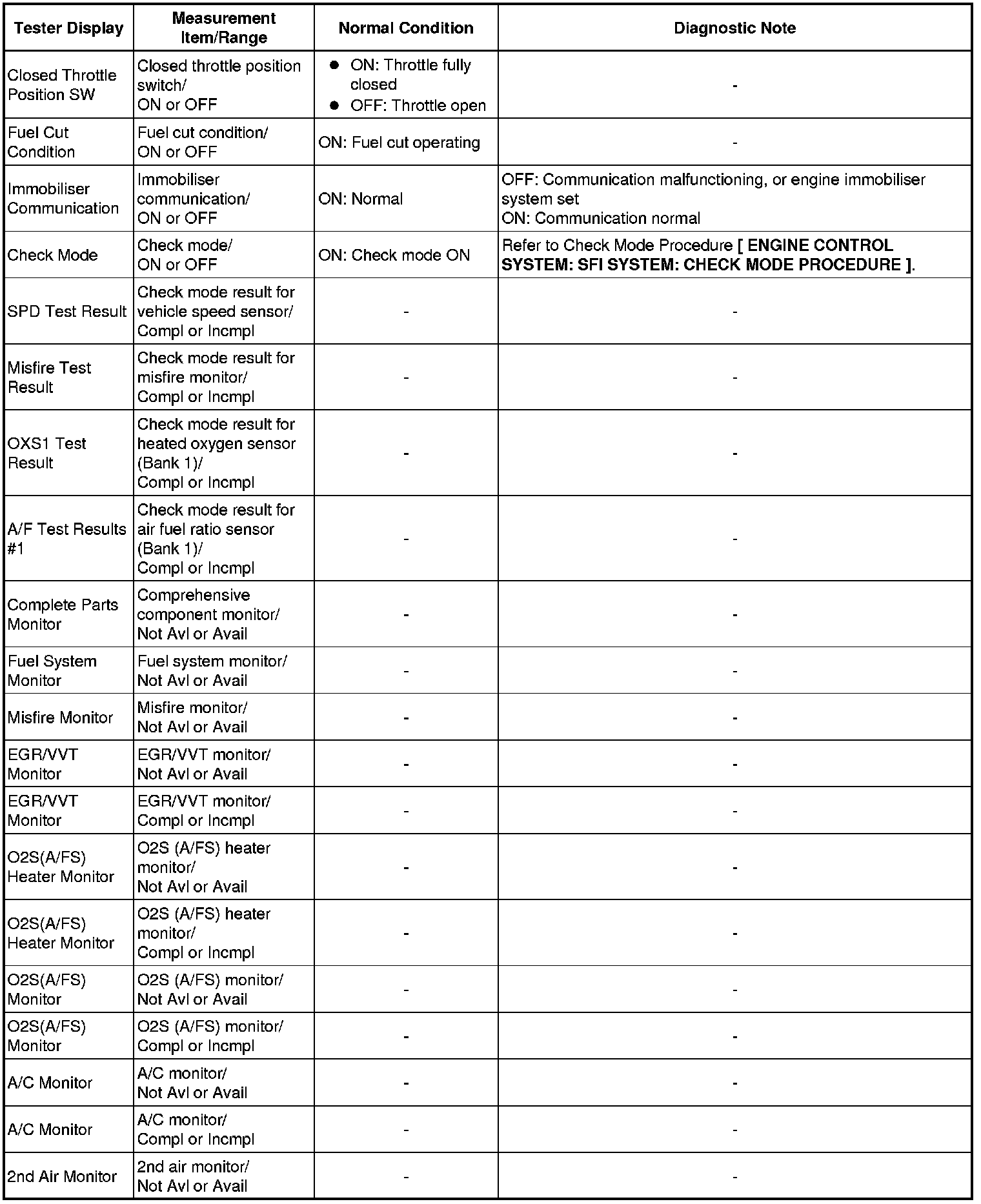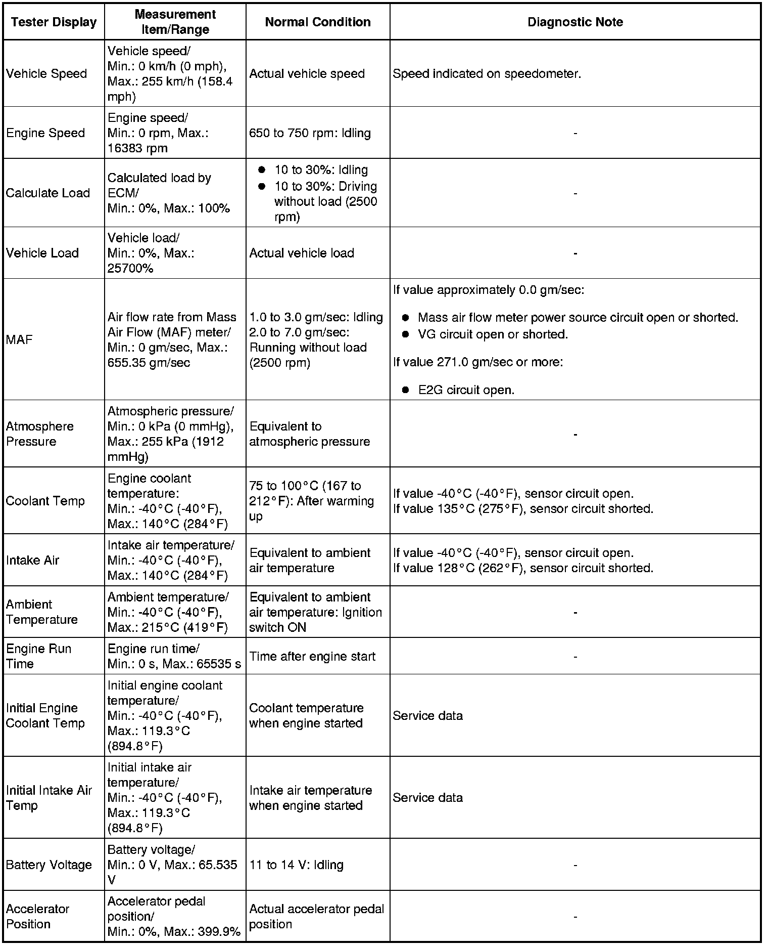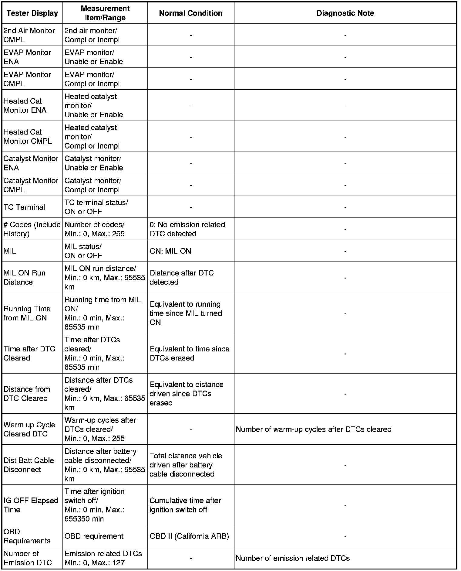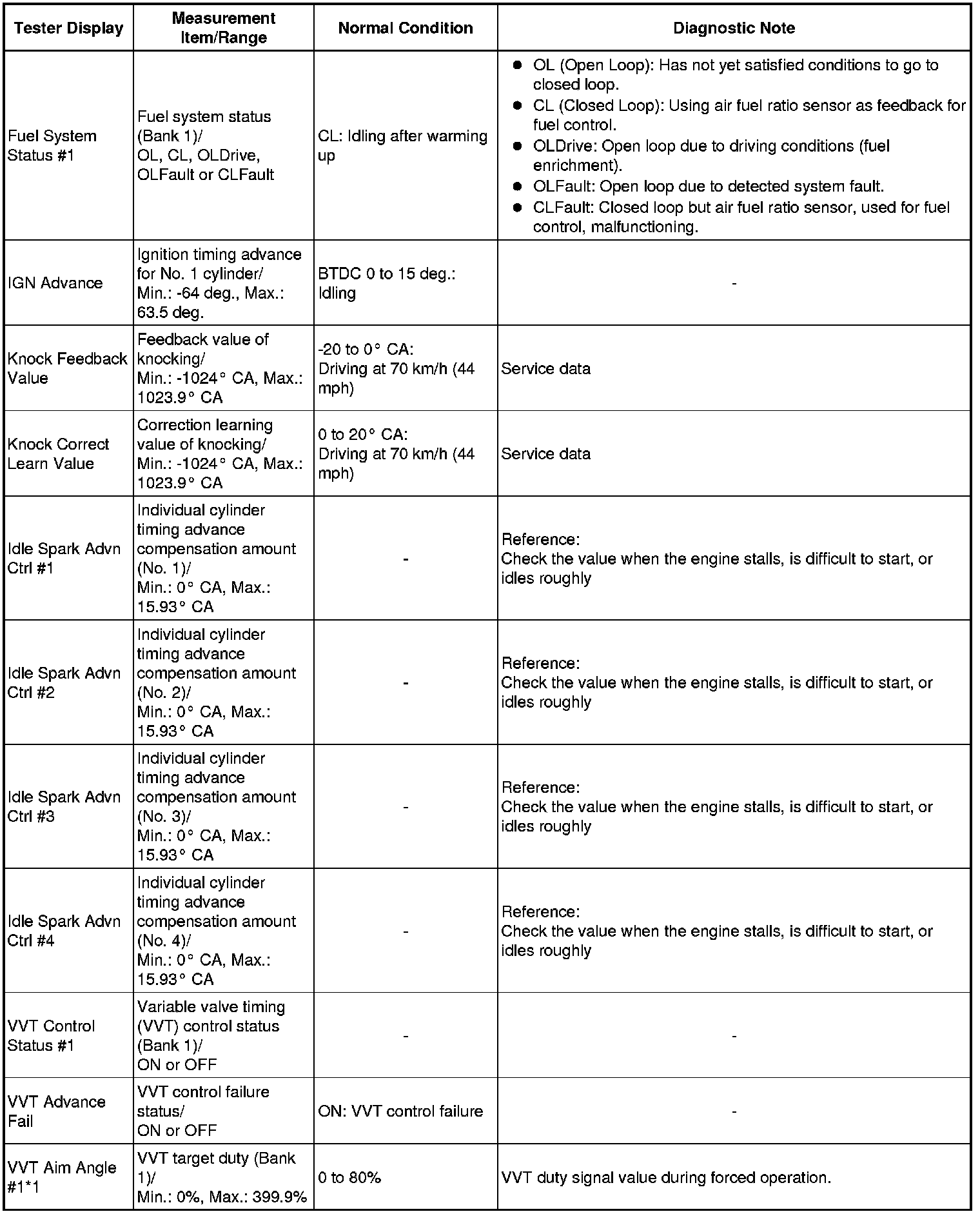 Using the Techstream to read the Data List allows the values or states of switches, sensors, actuators and other items to be read without removing any parts. This non-intrusive inspection can be very useful because intermittent conditions or signals may be discovered before parts or wiring is disturbed. Reading the Data List information early in troubleshooting is one way to save diagnostic time