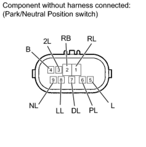 If the resistance is not as specified, replace the park/neutral position switch assembly.