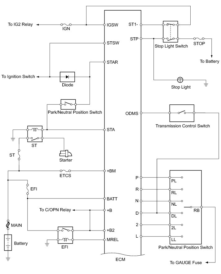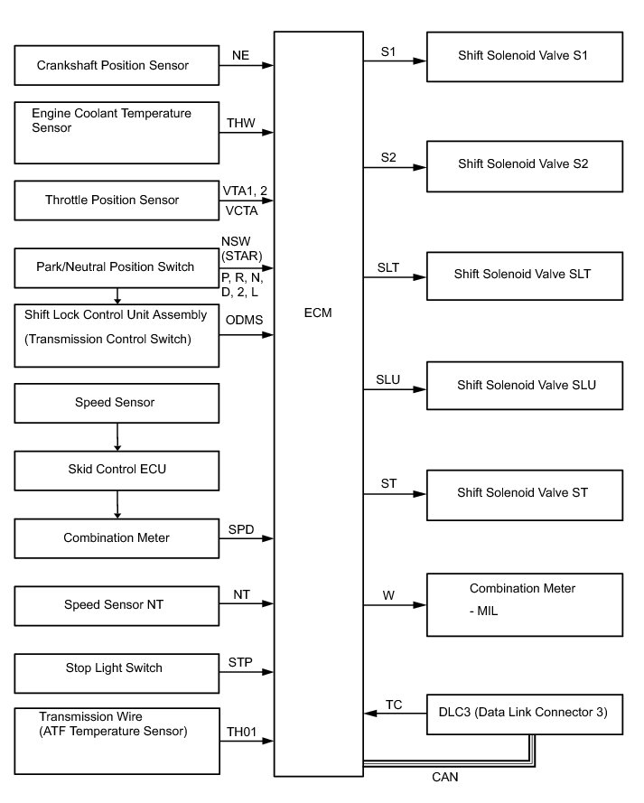 The configuration of the electronic control system in the U341E automatic transaxle is as shown in the following chart.