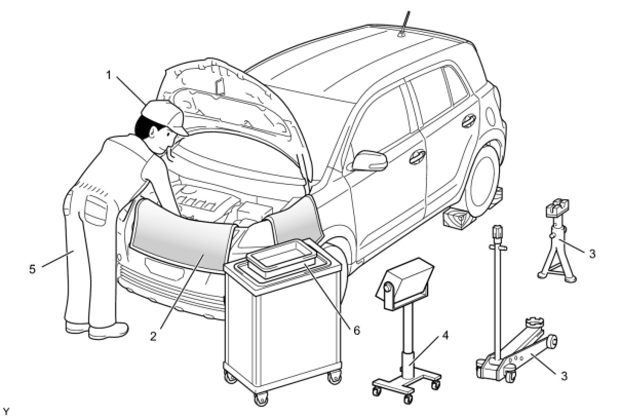 (b) JACKING UP AND SUPPORTING VEHICLE