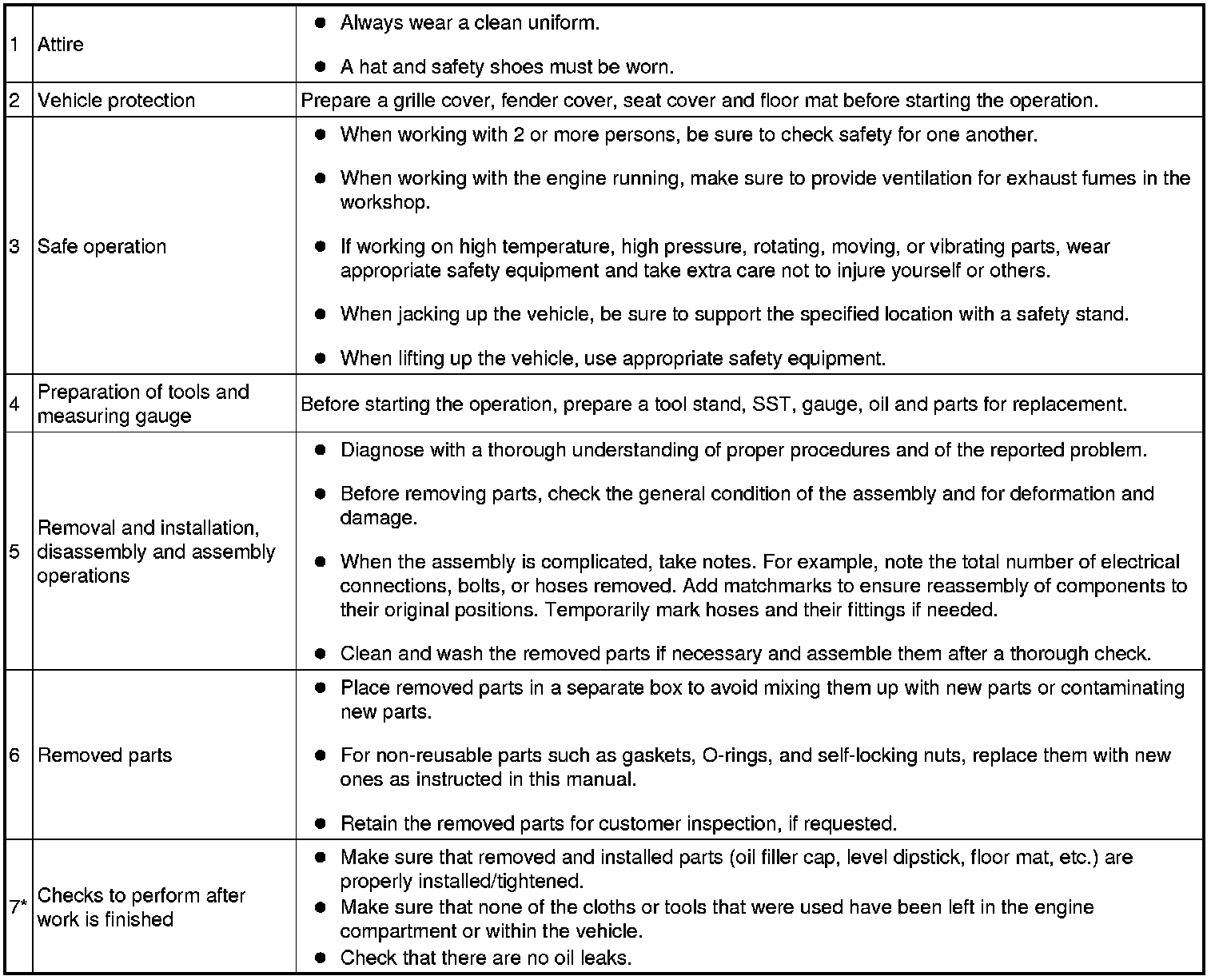 * Failure to carry out the service operations in the correct sequence could cause the SRS to unexpectedly deploy during servicing and lead to serious injury. Furthermore, if a mistake is made when servicing the SRS, it is possible that the SRS may fail to operate properly. Before servicing (including removal or installation of parts, inspection or replacement), be sure to read the following section carefully.