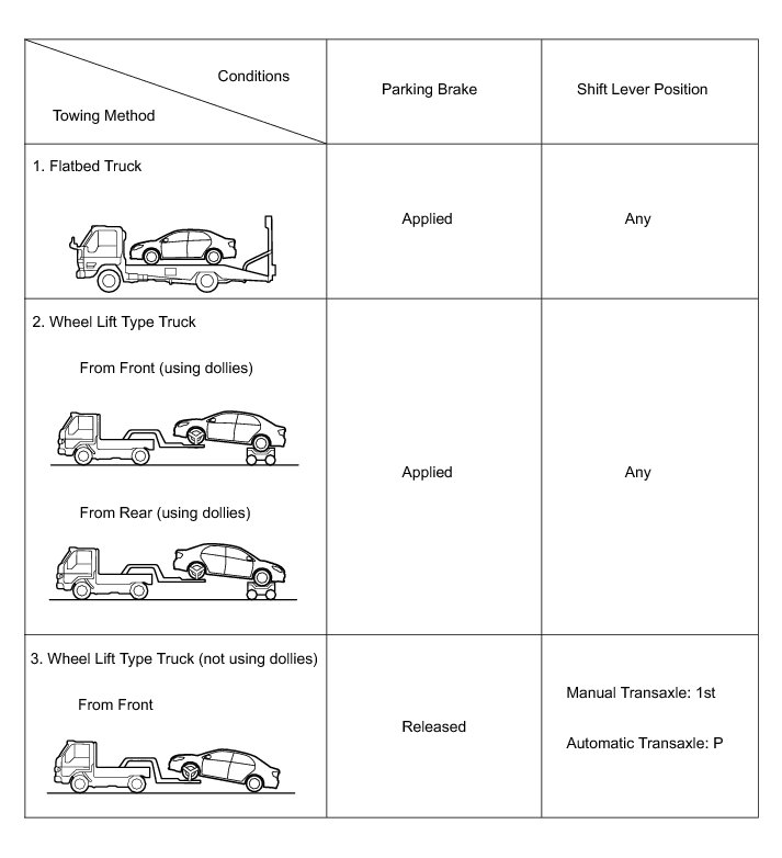 * If the vehicle is towed facing rearward with the front wheels on the ground, the drivetrain may overheat and be damaged.