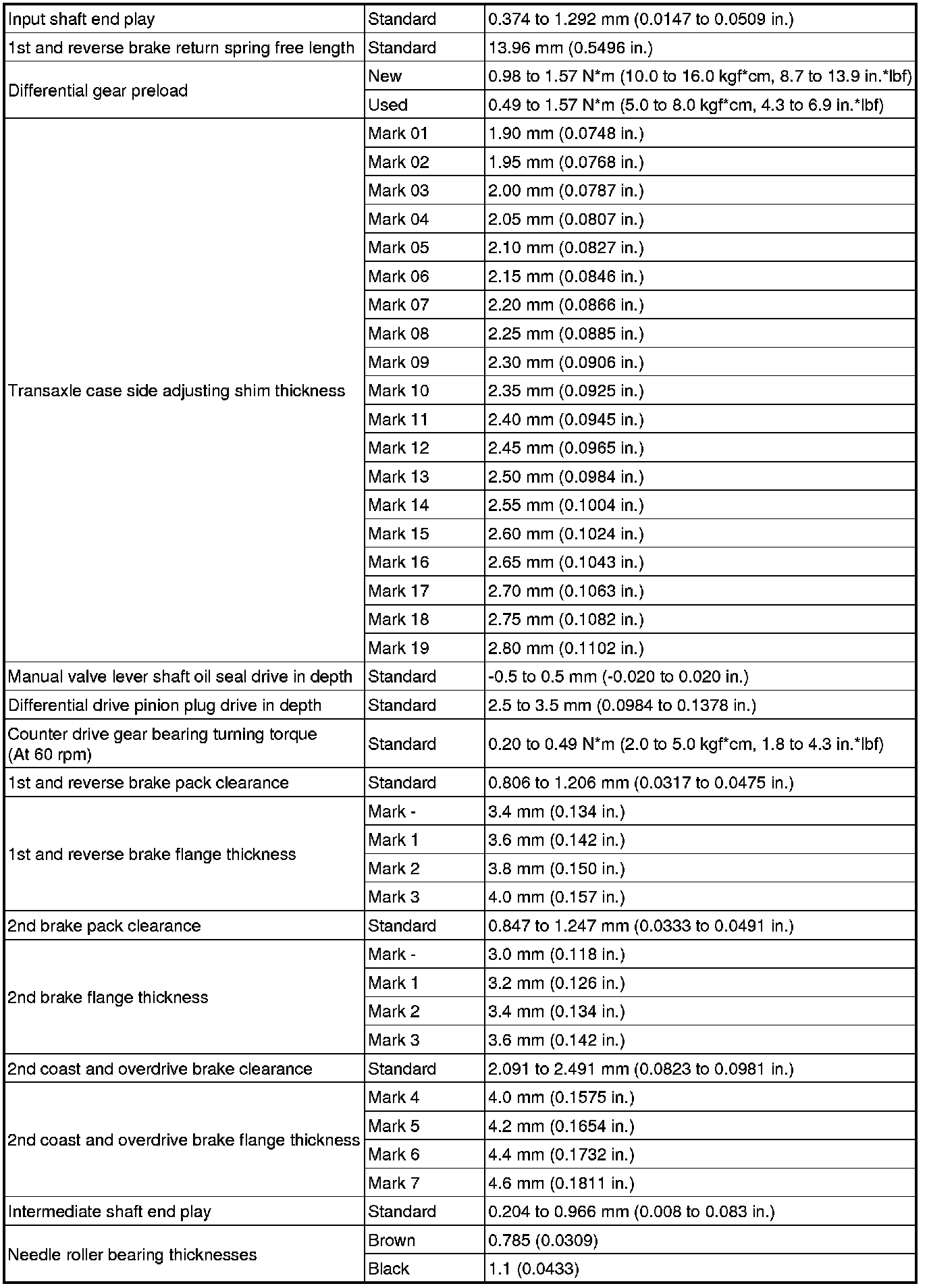 SERVICE SPECIFICATIONS: U341E AUTOMATIC TRANSAXLE: SERVICE DATA