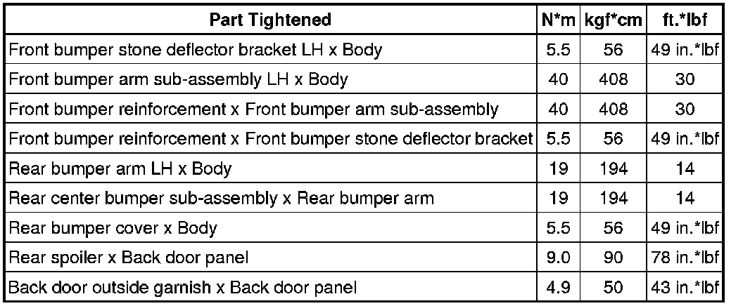 SERVICE SPECIFICATIONS: EXTERIOR: TORQUE SPECIFICATIONS