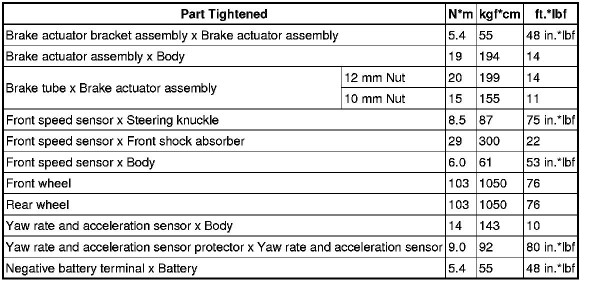SERVICE SPECIFICATIONS: BRAKE CONTROL: TORQUE SPECIFICATIONS