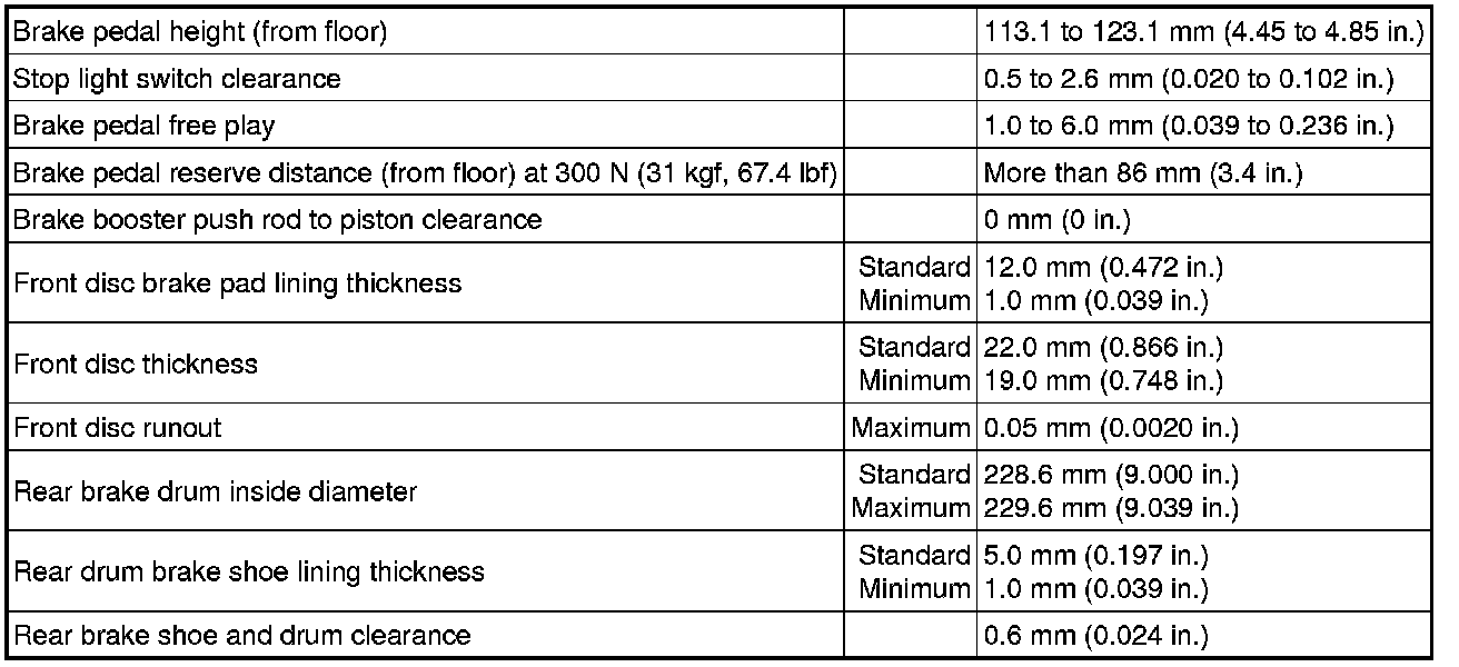 SERVICE SPECIFICATIONS: BRAKE: SERVICE DATA