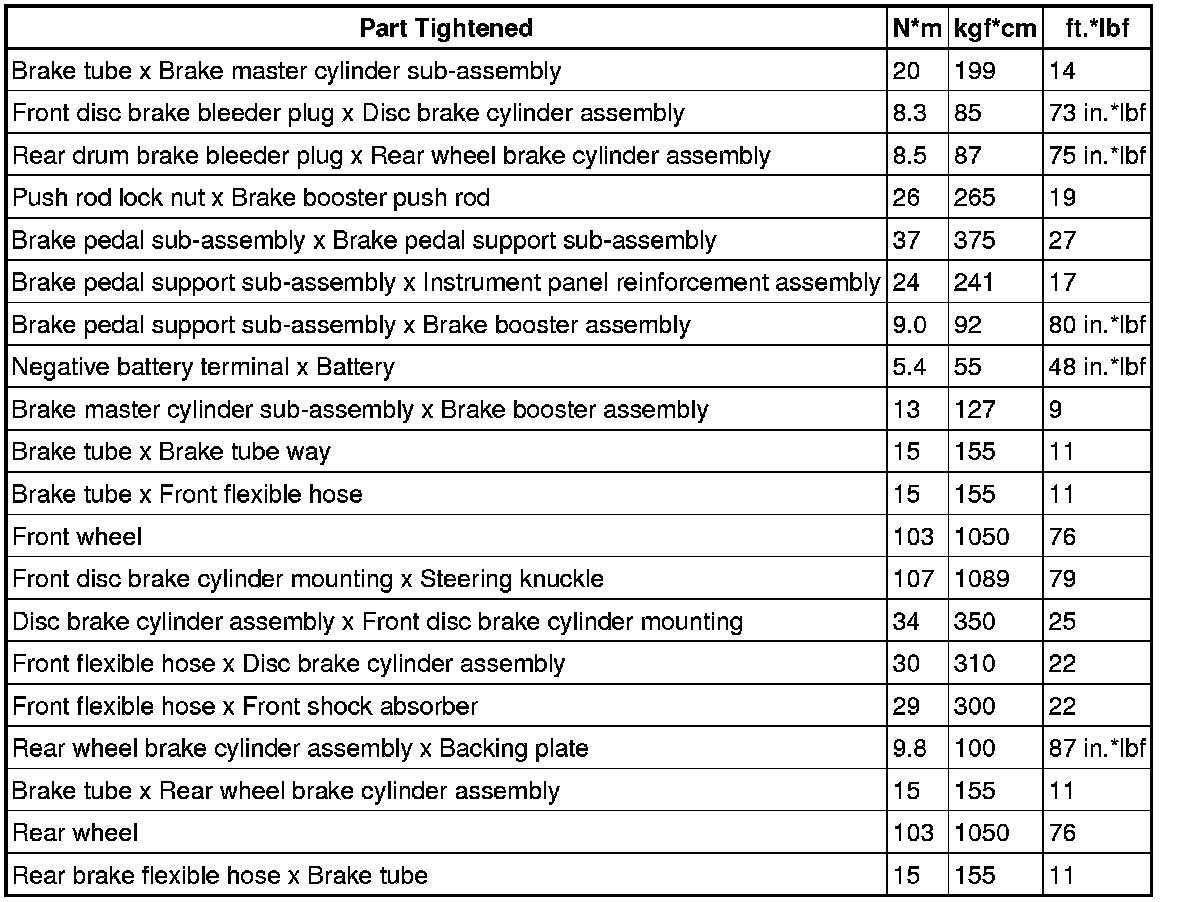 SERVICE SPECIFICATIONS: BRAKE: TORQUE SPECIFICATIONS