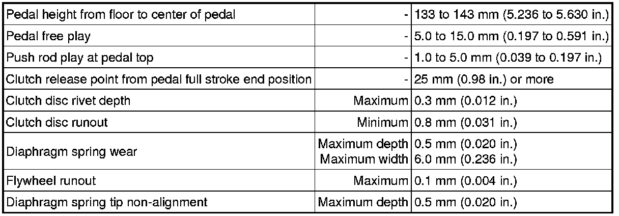 SERVICE SPECIFICATIONS: CLUTCH: SERVICE DATA