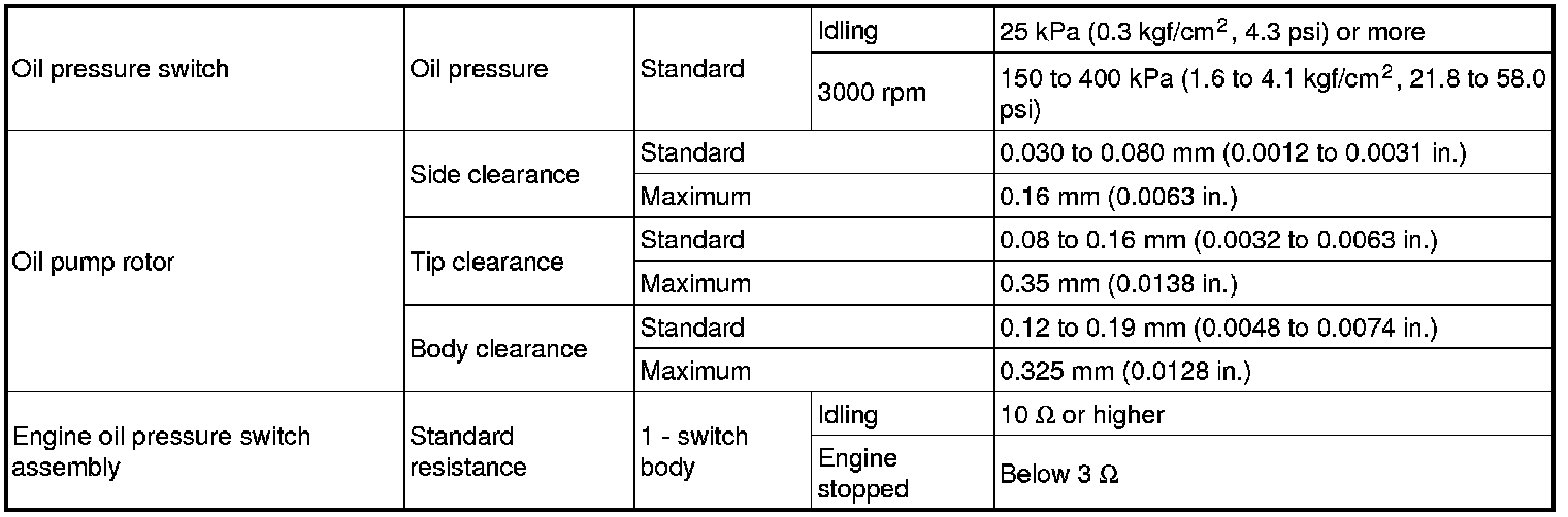 SERVICE SPECIFICATIONS: 2ZR-FE LUBRICATION: SERVICE DATA