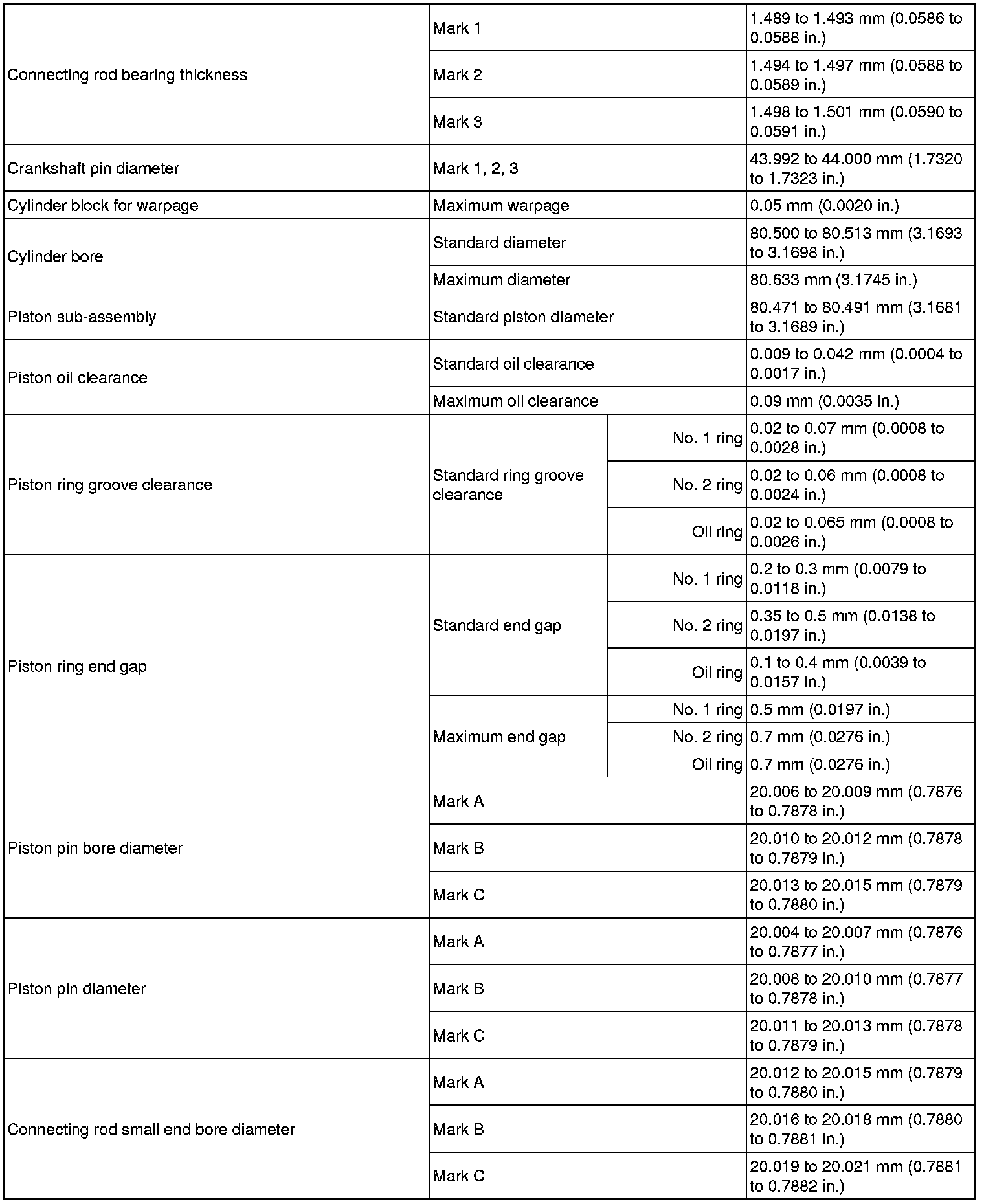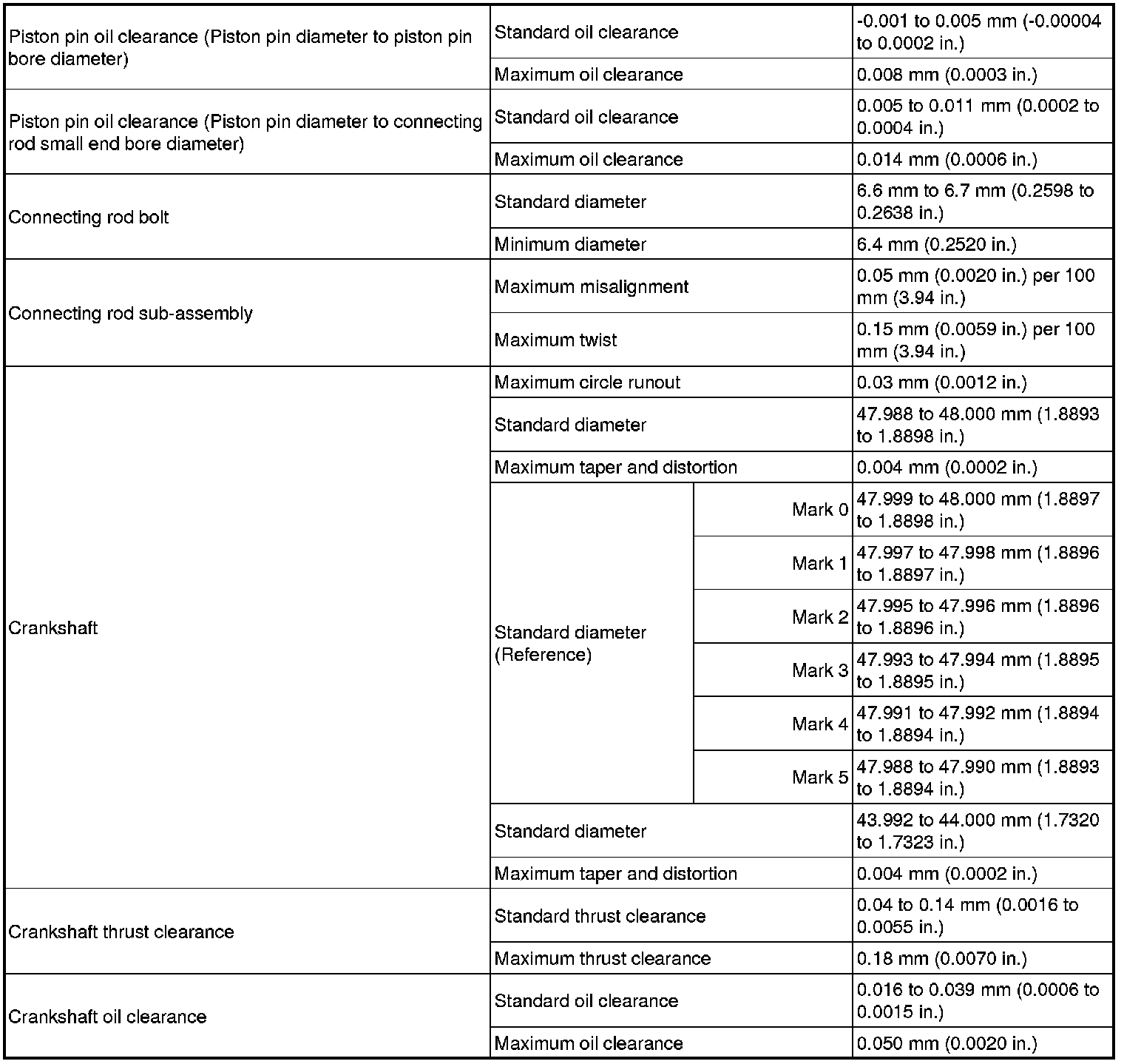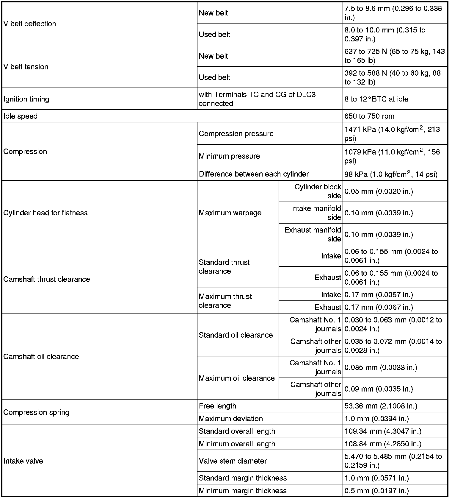 SERVICE SPECIFICATIONS: 2ZR-FE ENGINE MECHANICAL: SERVICE DATA