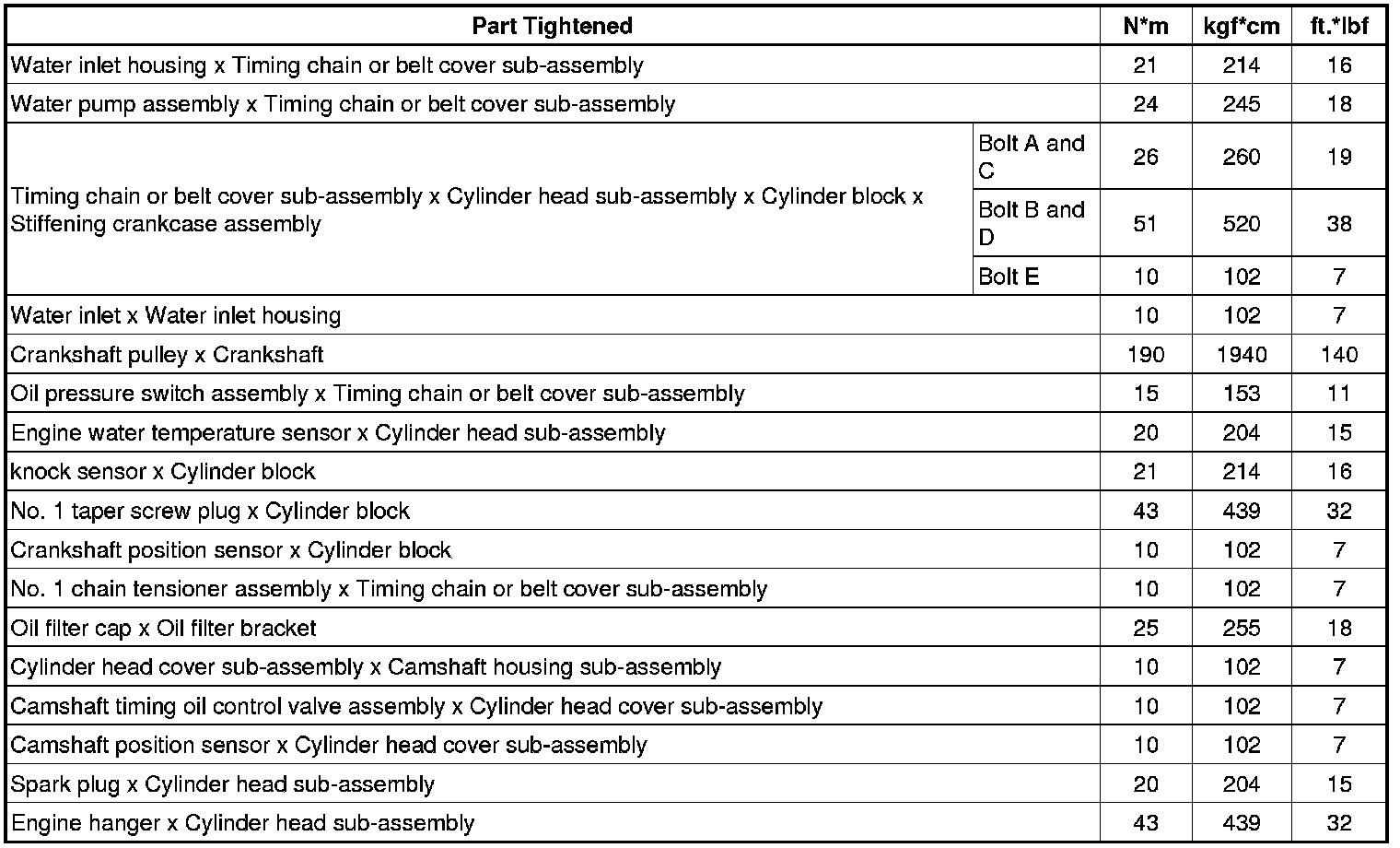 SERVICE SPECIFICATIONS: 2ZR-FE ENGINE MECHANICAL: TORQUE SPECIFICATIONS