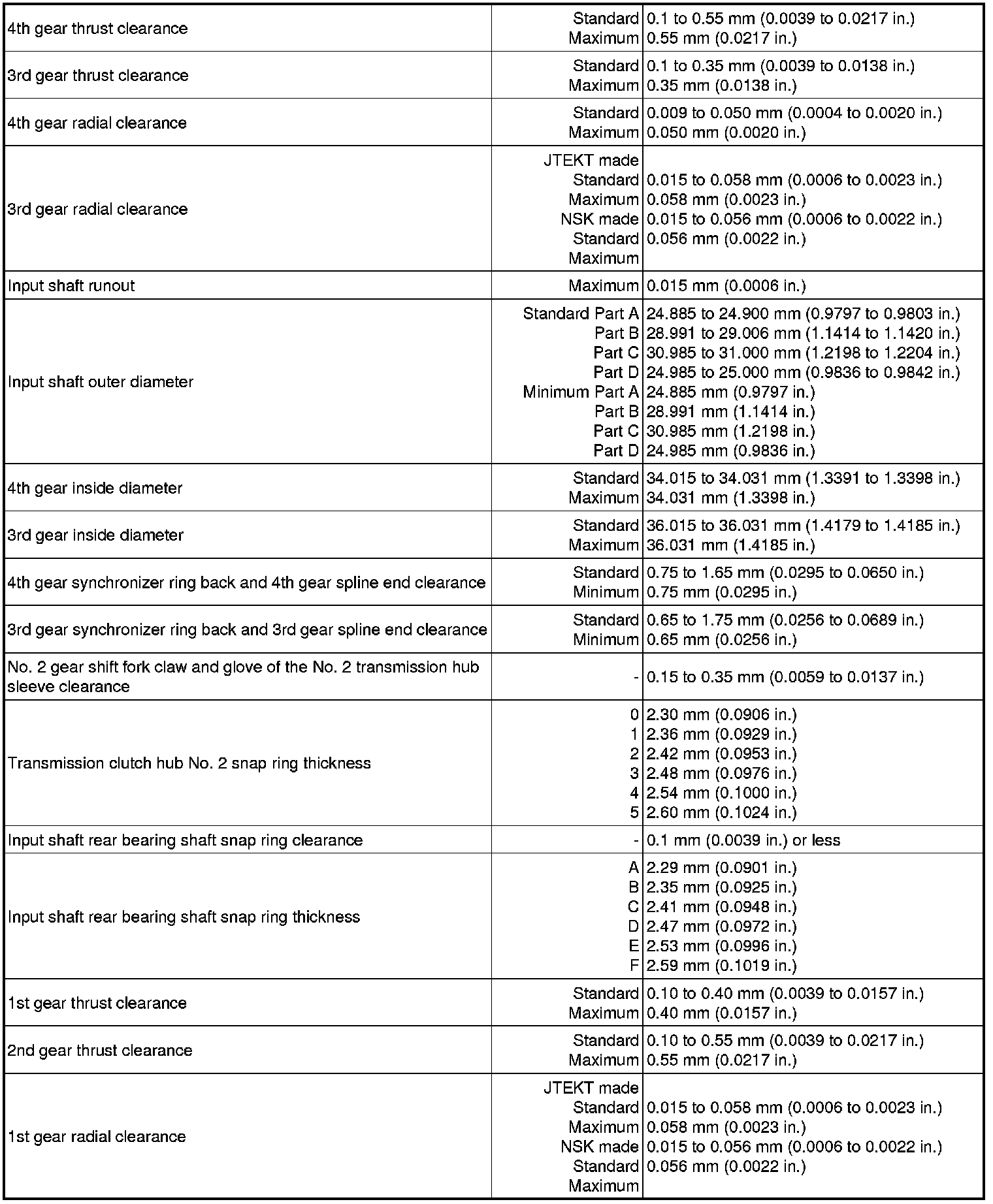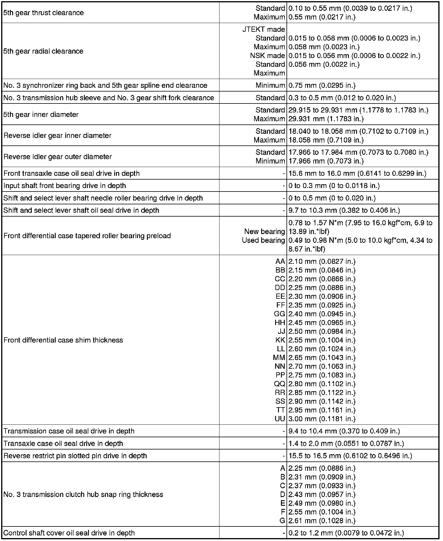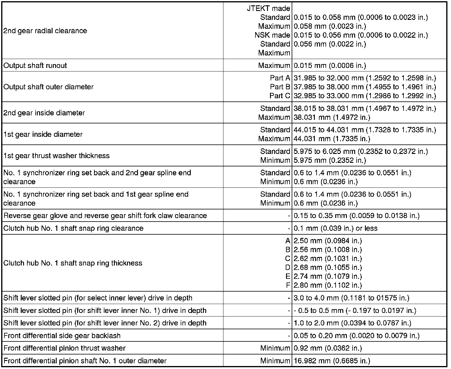 SERVICE SPECIFICATIONS: C50 MANUAL TRANSAXLE: SERVICE DATA