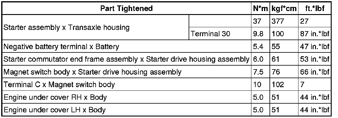 SERVICE SPECIFICATIONS: 2ZR-FE STARTING: TORQUE SPECIFICATIONS