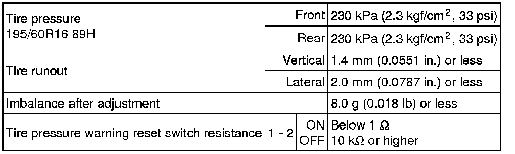 SERVICE SPECIFICATIONS: TIRE AND WHEEL: SERVICE DATA