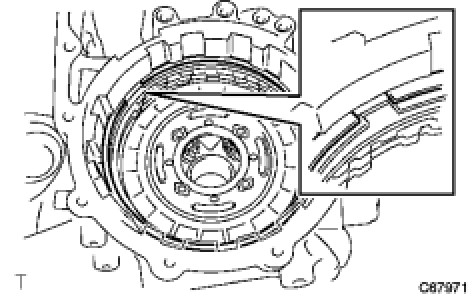 (b) Using a screwdriver, install a snap ring to the transaxle case.