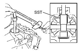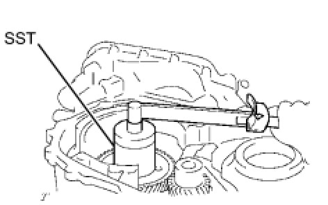 (c) Using SST and a small torque wrench, measure the preload of the differential gear.