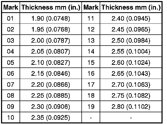Select a new transaxle case side adjusting shim in accordance with the following table.