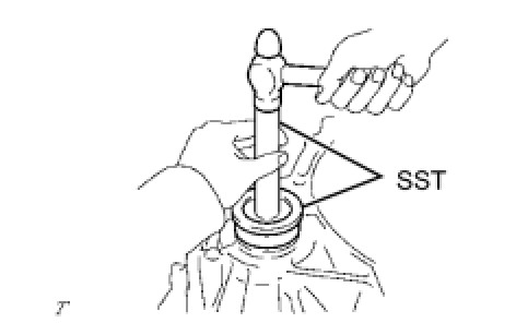 (b) Using SST and a hammer, install a new manual valve lever shaft oil seal.